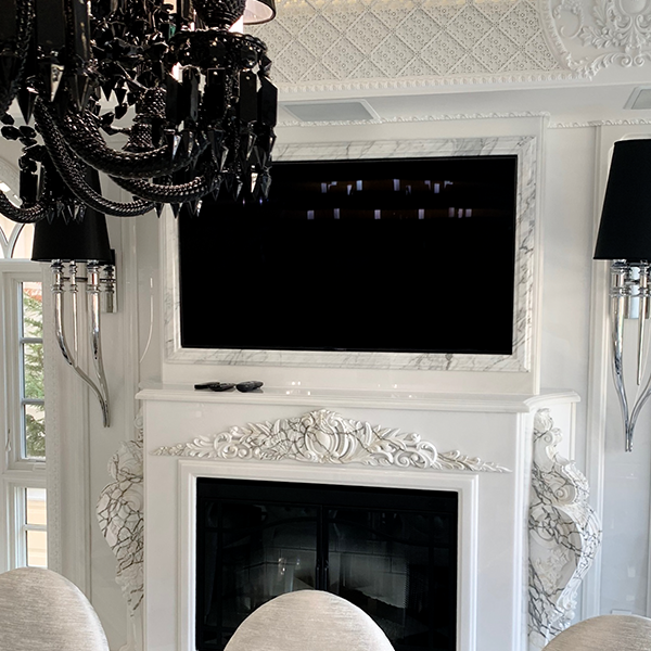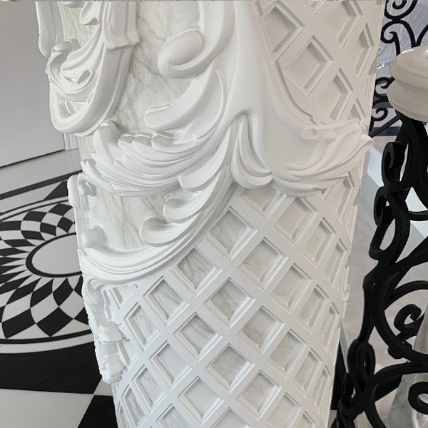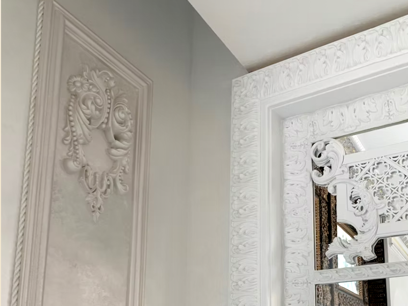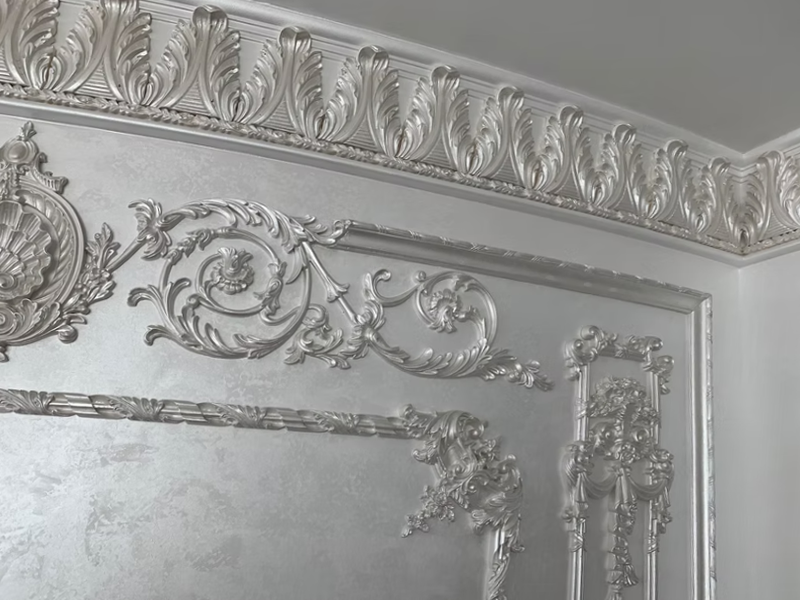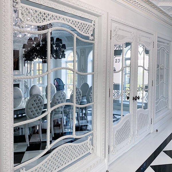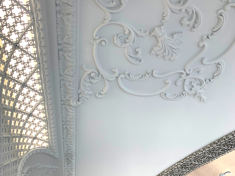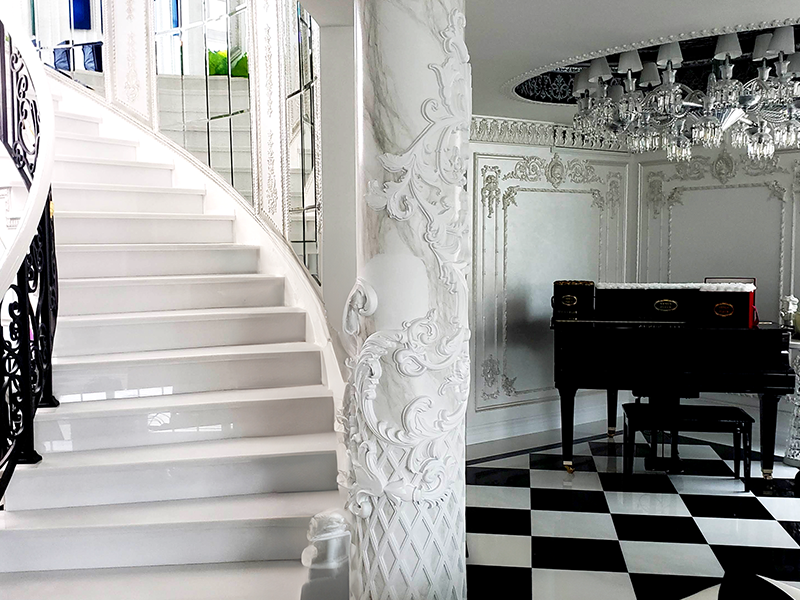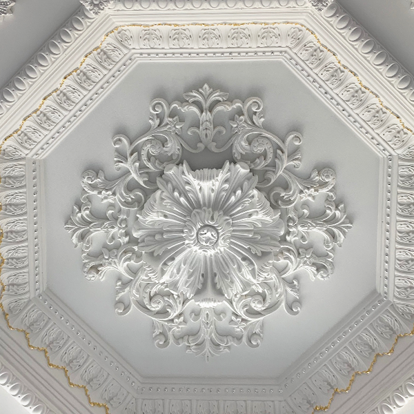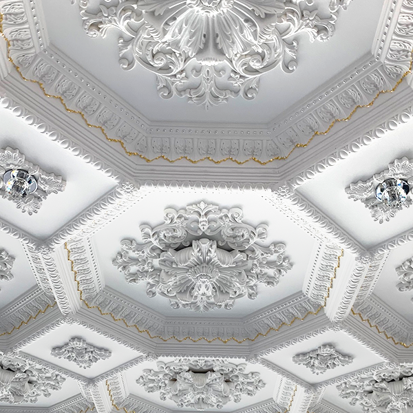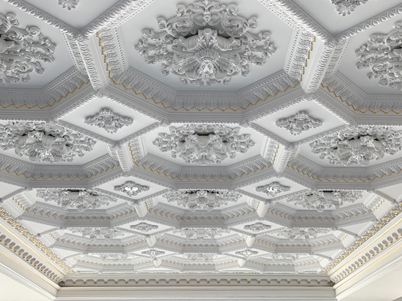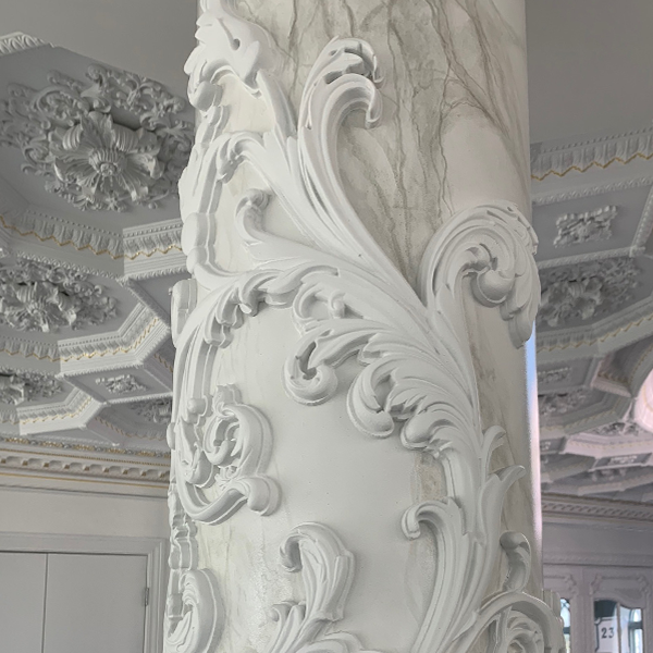 This project highlights ornate architectural details, including intricate ceiling designs, decorative columns, and wall moldings.