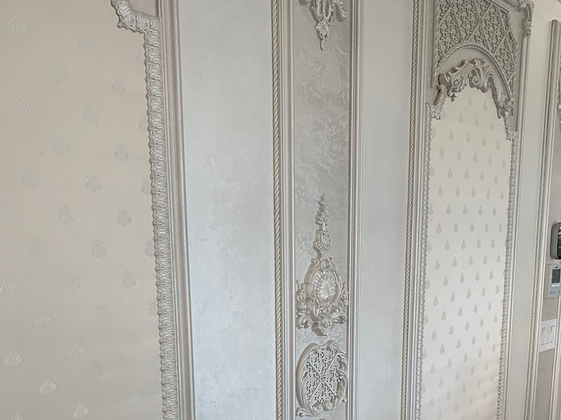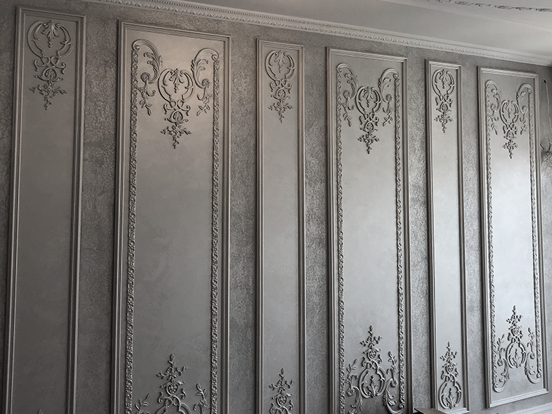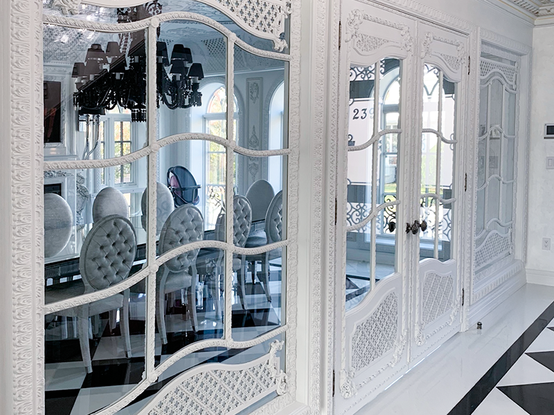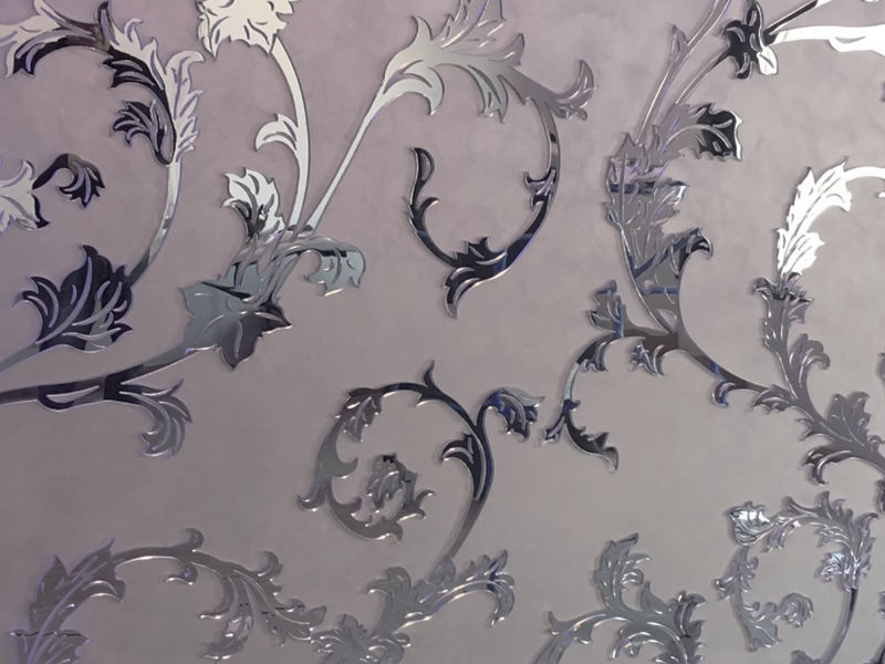 This project features intricate wall and panel designs with decorative patterns, floral motifs, and reflective surfaces.