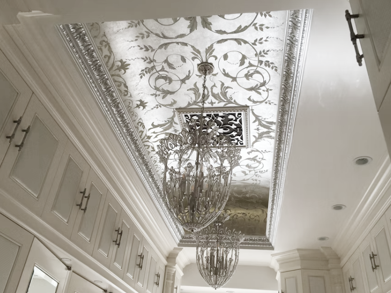This project showcases elegant ceiling designs with intricate patterns, decorative moldings, and ornate details.